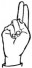 На ћирилици написано ЕВГЕНИЈЕ АДАМАЦ састоји се из 14 слова [?]. Исписано ћириличном једноручном азбуком за глувонеме: